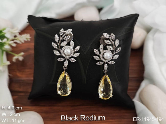 AD Jewelry Black Rhodium Polish Designer Party Wear AD Earrings