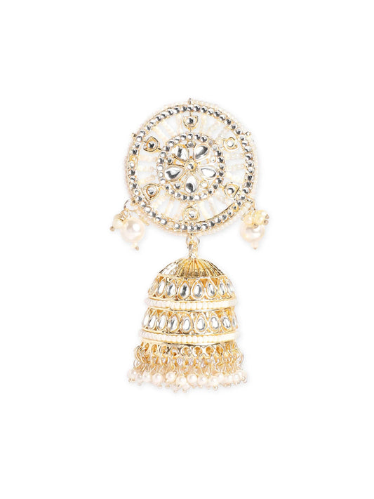 Enfashionate 22K Gold Plated Pearl Dangle Kundan Statement Jhumka Earrings