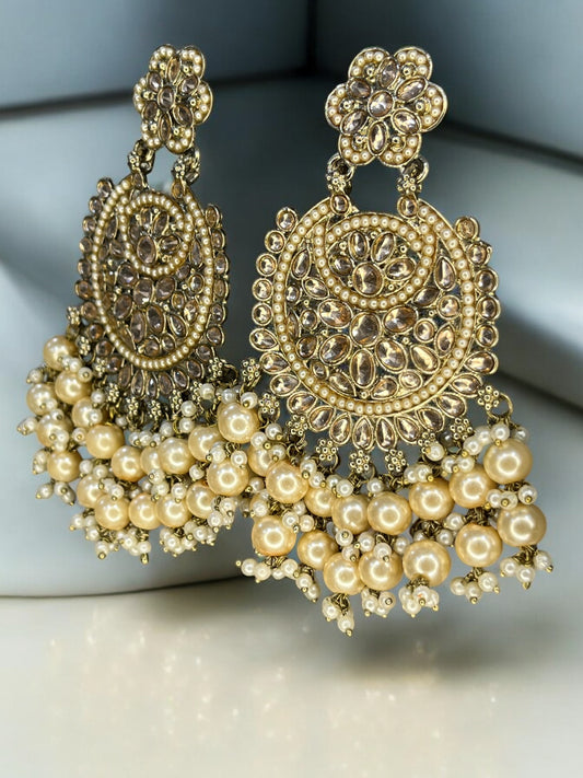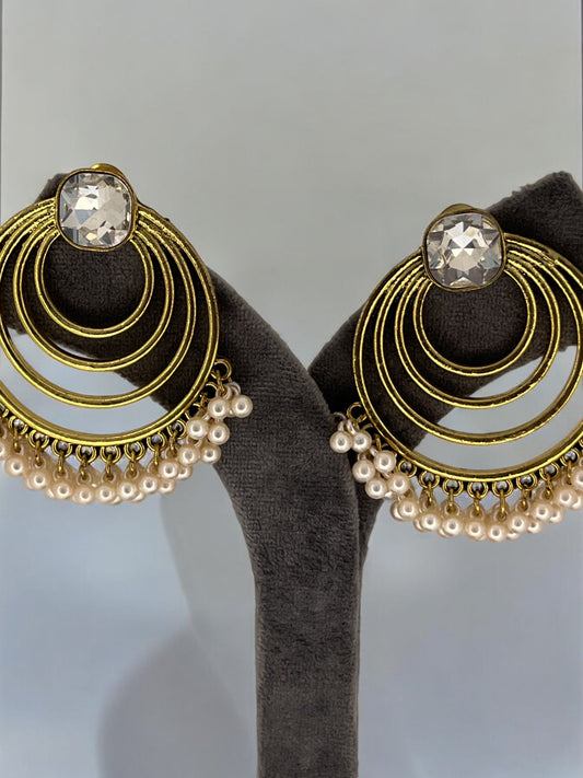Antique Gold Plated Pearl studded Statement Chandbali Earring