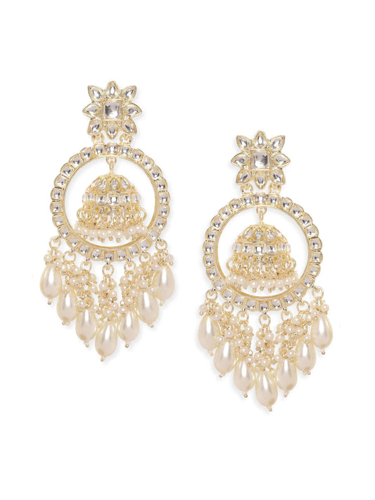 Enfashionate 22K Gold Plated Pearl Dangle Kundan Statement Jhumka Earrings