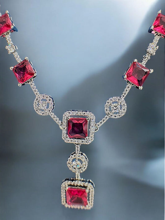 Enfashionate Voguish Rhodium-Plated Cordate Pink Sapphire Necklace With Zirconia Accents